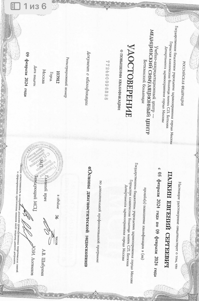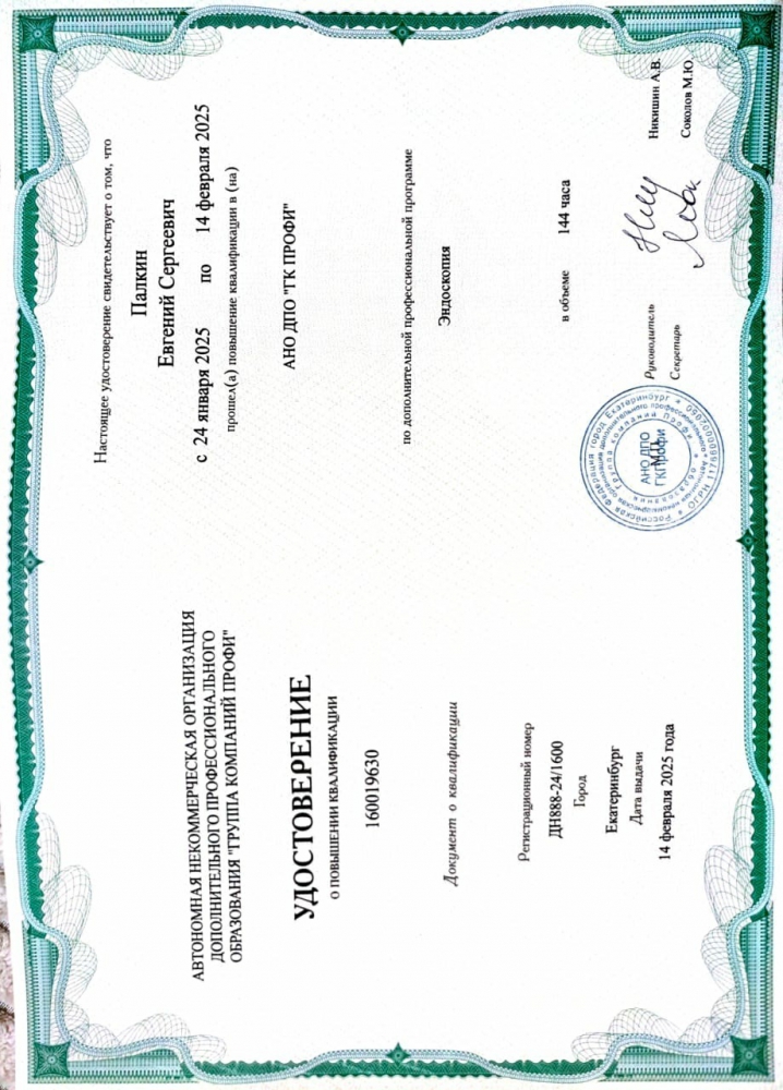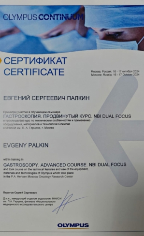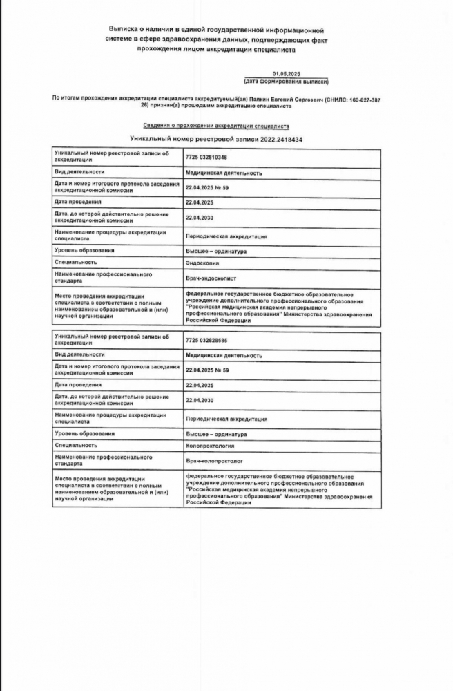 С 2017 года действует сертификат специалиста, по которому доктор допущен к осуществлению медицинской или фармацевтической деятельности по специальности «Колопроктология».