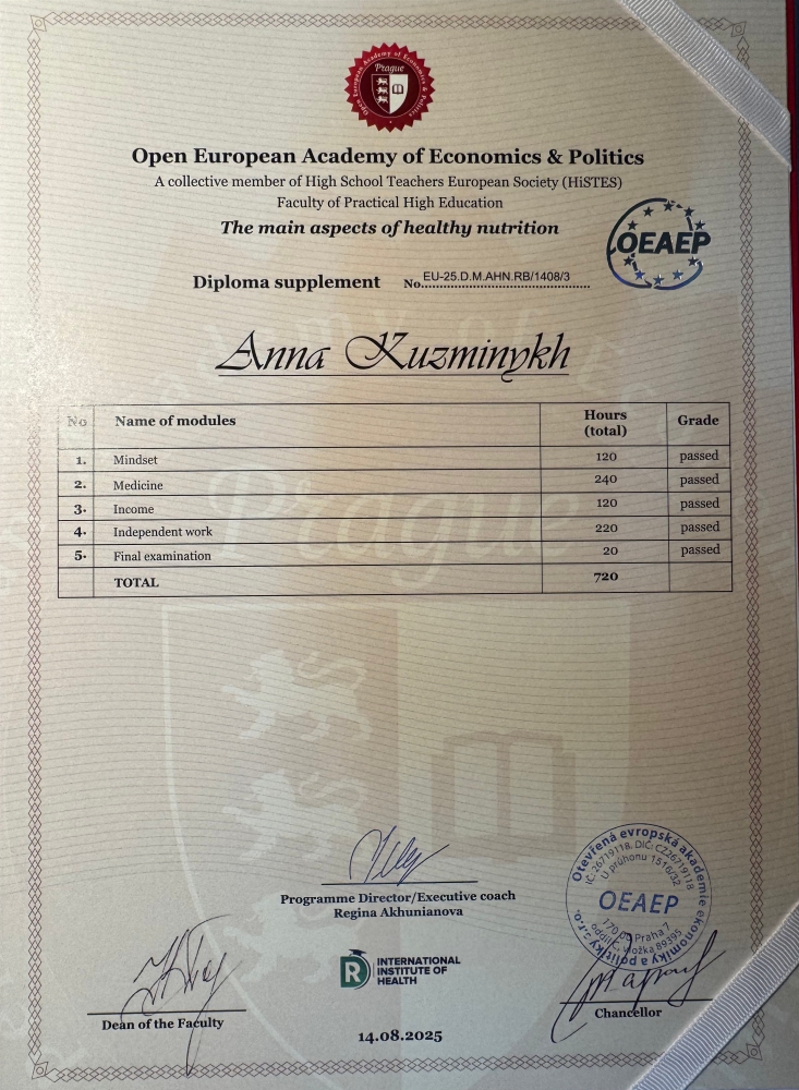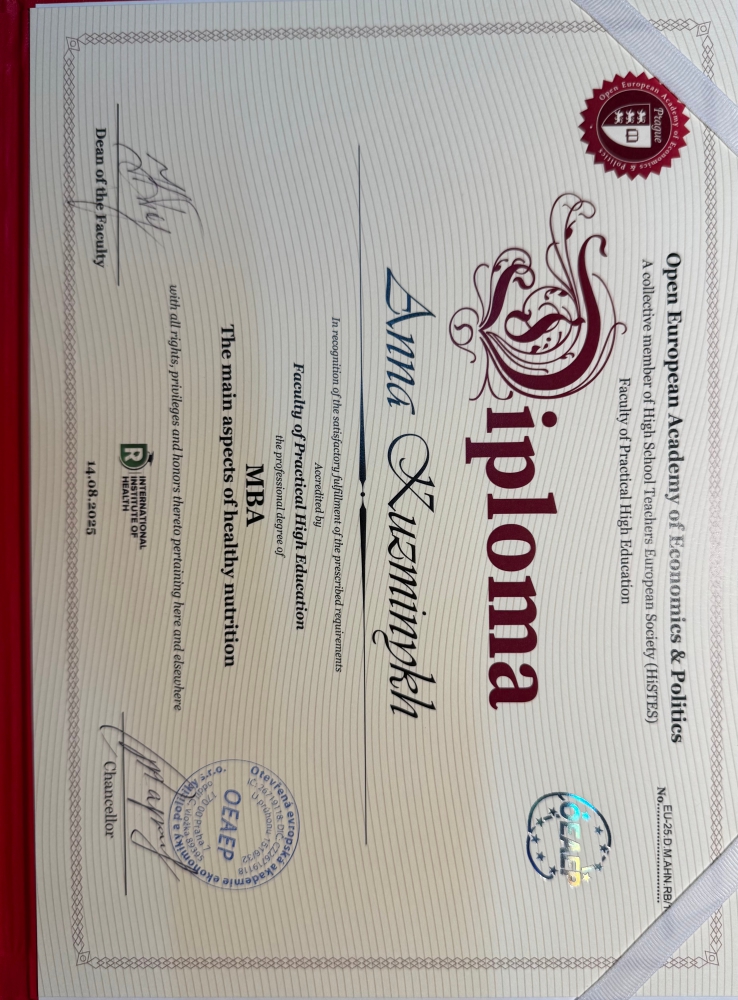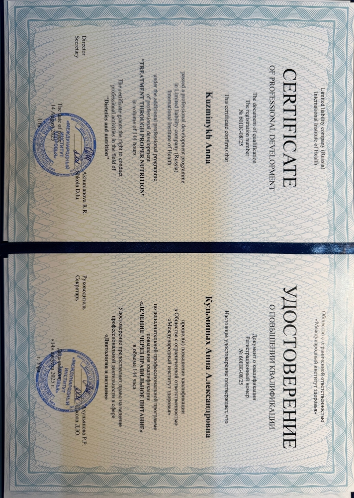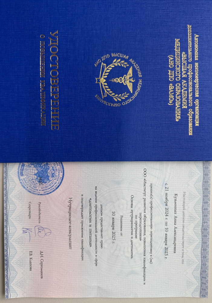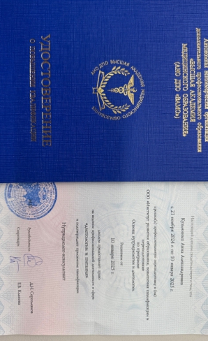 В 2009 году окончила Ивановскую государственную медицинскую академию по специальности «Педиатрия». Имеет сертификаты по специальностям «Неонатология», "Гастроэнетерологоия", "Нефрология", "Нутрициология".