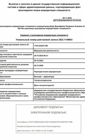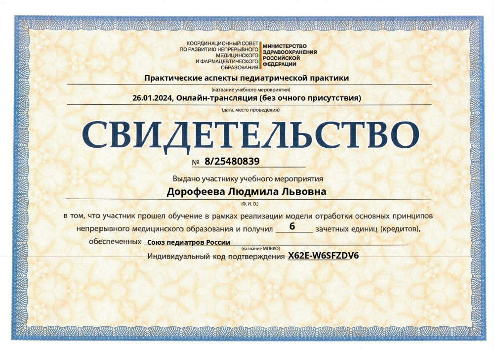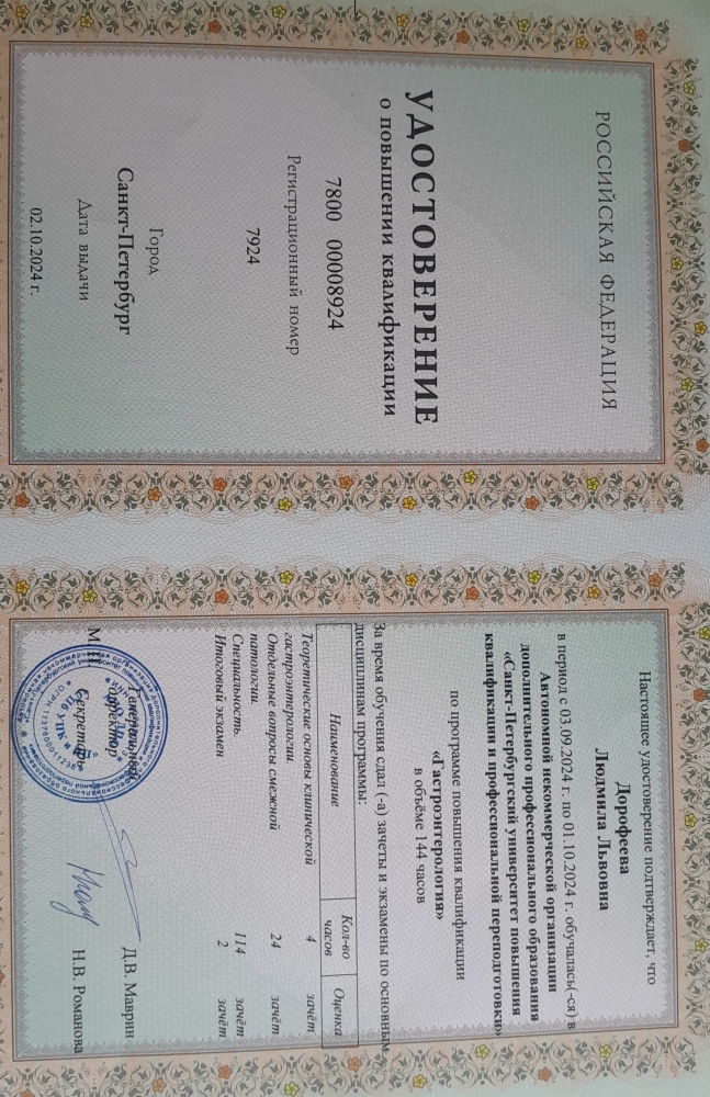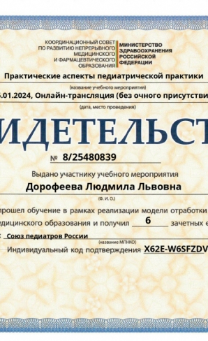 Принимает участие в научно - практических конференциях по гастроэнтерологии и педиатрии, использует в практике современные клинические рекомендации Европейского гастроэнтерологического сообщества.