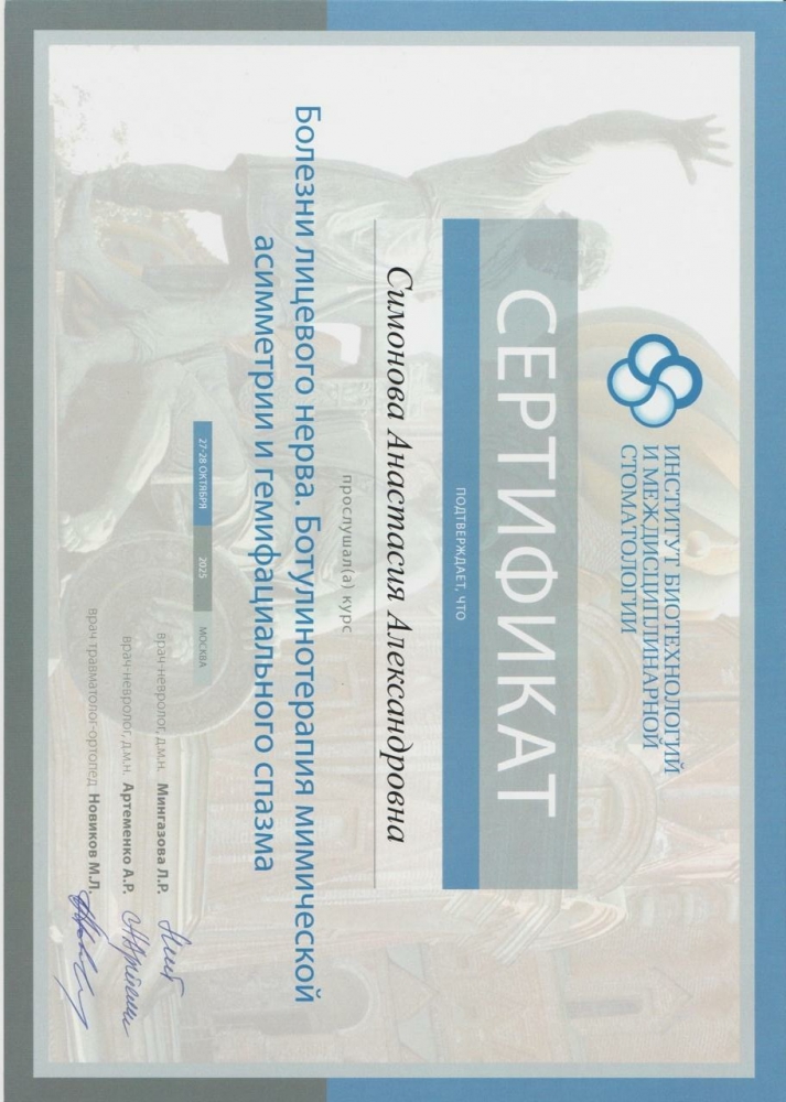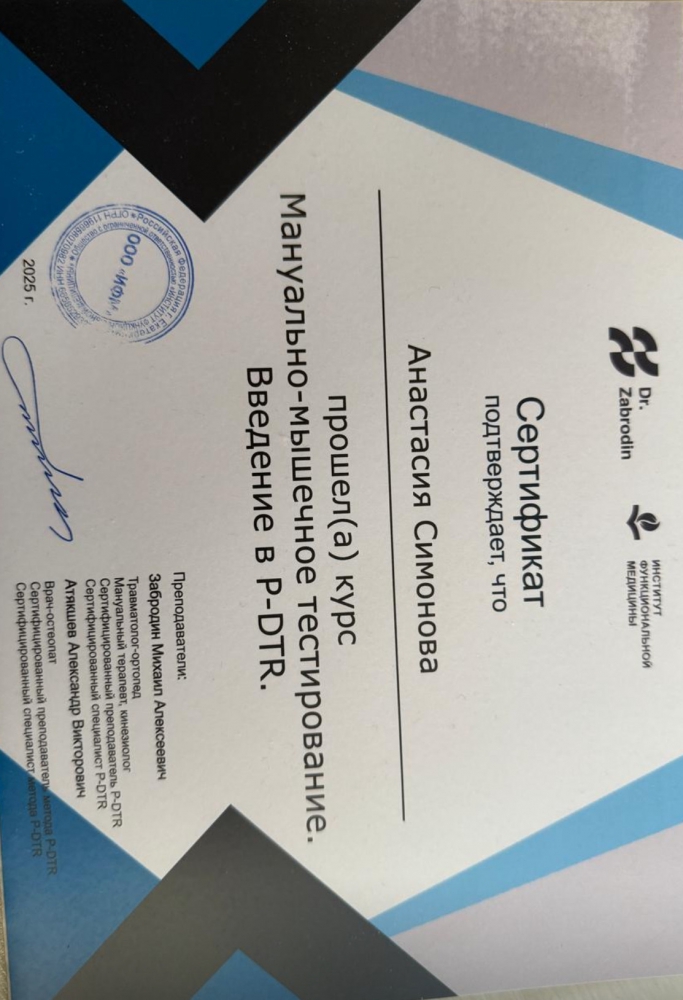 2025 г - Специалист метода P-DTR , базовый курс , проходит обучение , ООО «Институт Функциональной Медицины» в Москве .