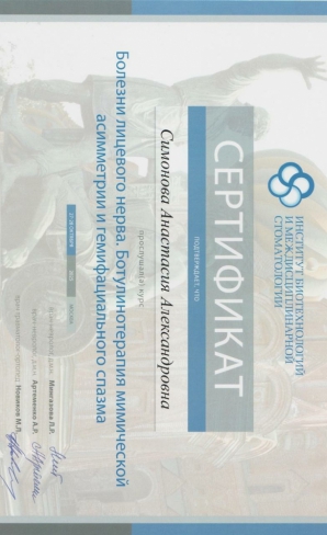 Имеет действующие сертификаты по всем перечисленным специальностям .