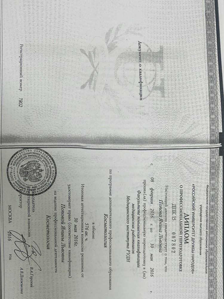Янина Львовна постоянно совершенствует свои знания и навыки, принимая участия в различных научно-практических конференция, участвует в ежегодных Конгрессах по косметологии и эстетической медицине: «Невские берега», IECTC, САМ.