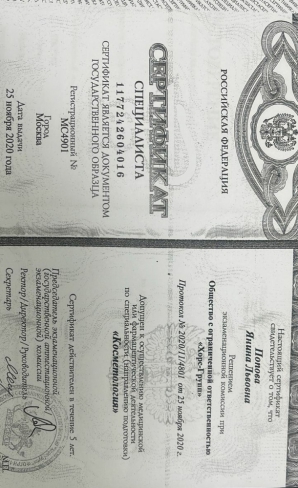 В июне 2023 прошла обучение «Уникальные возможности Radiesse. Новые горизонты ботулинотерапии. Легендарная техника «Бланшинг, обучение REVI «Методы и средства восстановления кожи при хроническом стрессе».