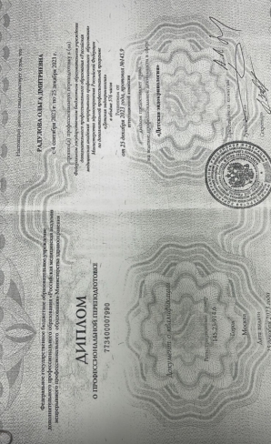 В 2023 году прошла переподготовку в ФГБОУДПО «Российская медицинская академия непрерывного профессионального образования» Министерства здравоохранения Российской Федерации по специальности «Детская эндокринология».
