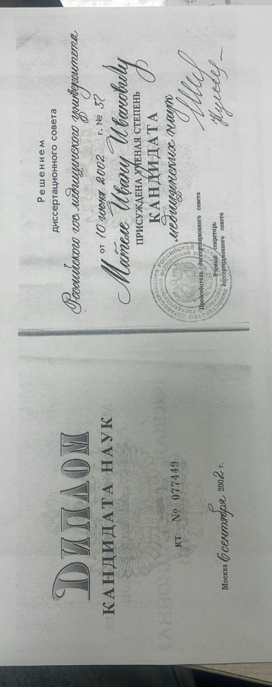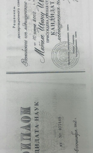 В 2002 году защитил кандидатскую диссертацию. Имеет научную степень – Кандидат медицинских наук.