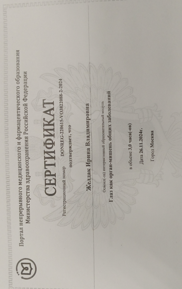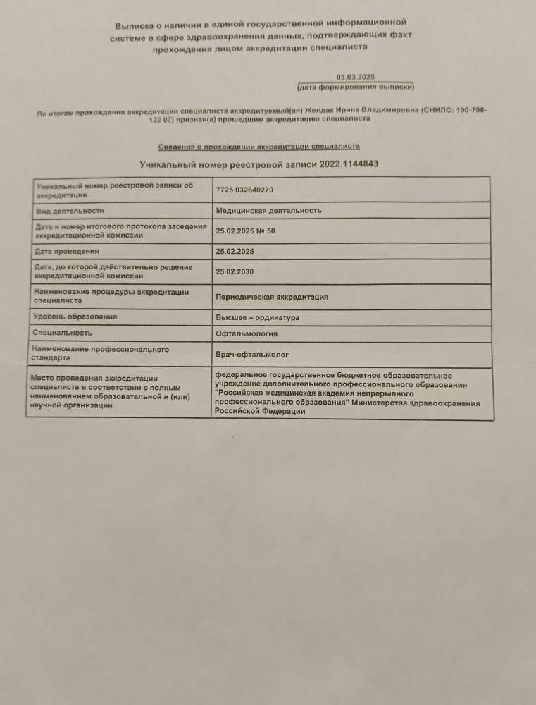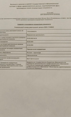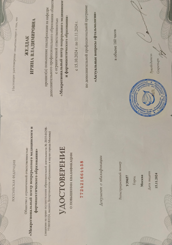 Владеет современными методами диагностики и лечения глазных болезней, имею навыки подбора контактных линз, выполняю амбулаторные операции.