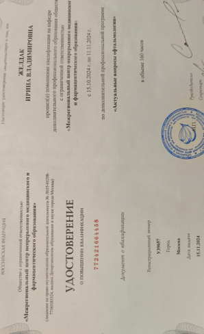 Курсы повышения квалификации: 2004, 2006, 2009,2010, 2014 гг.