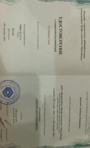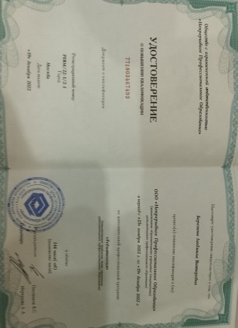 В 2013 году прошла профессиональную переподготовку по специальности «Ревматология» на базе НИИ Ревматологии имени В.А.Насоновой. Повышение квалификации – 2018 г, 2022 г.
